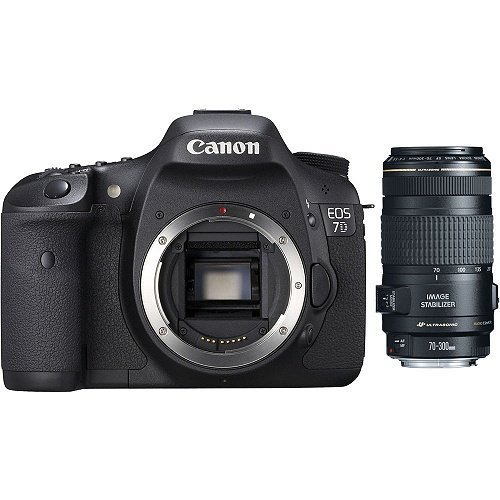 Canon 3814B004L2-KIT includes the EOS 7D 18MP Digital SLR Camera Body and EF 70-300mm f/4-5.6 IS USM Telephoto Zoom Lens. The EOS 7D Digital SLR Camera has many features including an 18MP APS-C size CMOS sensor, Dual DIGIC 4 Image Processors, and an all cross-type 19-point AF system with improved AI Servo II AF subject tracking and user-selectable AF area selection modes for sharp focus. The EOS 7D's Intelligent Viewfinder provides 100% coverage and displays user-selected AF modes as well as a spot metering circle. The EF 70-300mm f/4-5.6 IS USM Telephoto Zoom Lens has been developed to meet the high-performance standards that today's photographer demand. Improved Image Stabilizer technology provides up to three stops of "shake" correction, and the "Mode 2" option stabilizes images while panning with a moving subject.